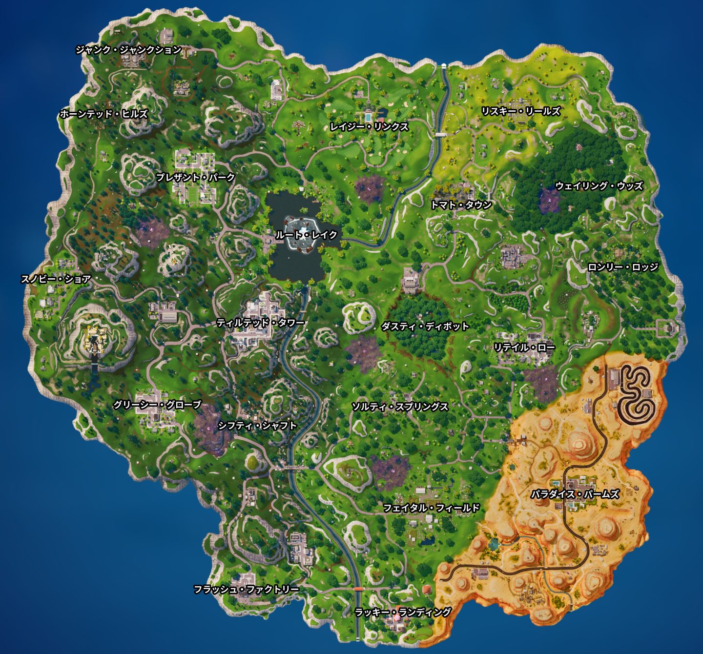 マップは「アナーキー・エーカー」が「レイジー・リンクス」に、「モイスティ・マイア」が「パラダイス・パームズ」になり新エリアとして登場しました。